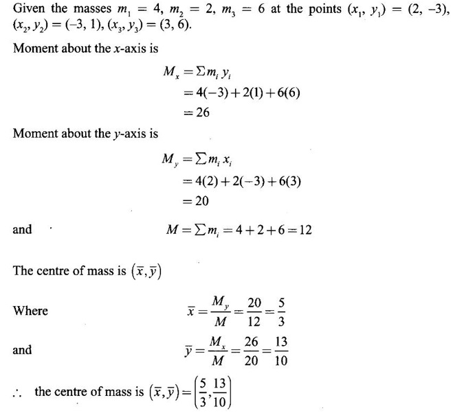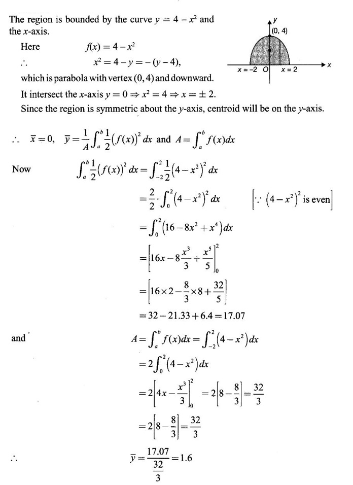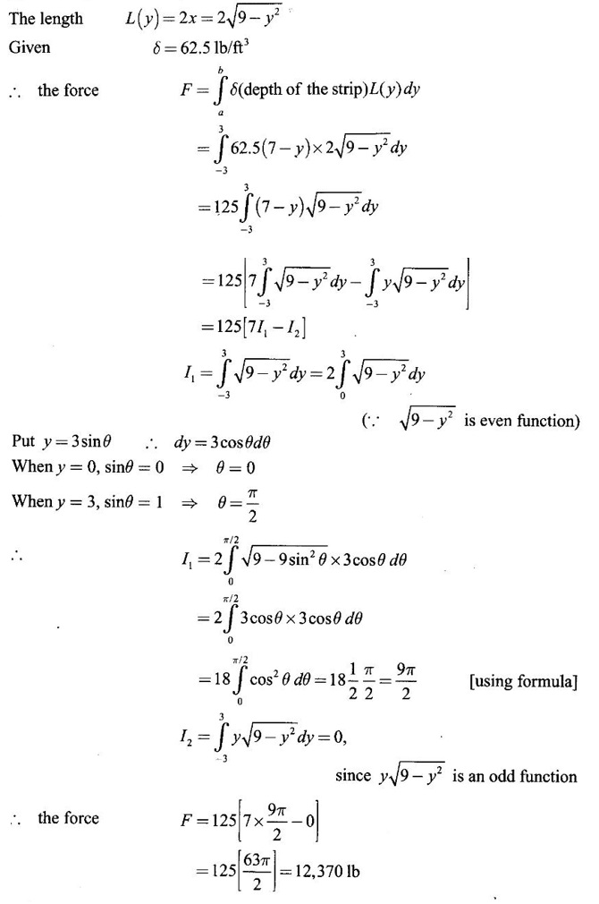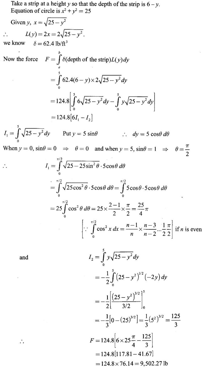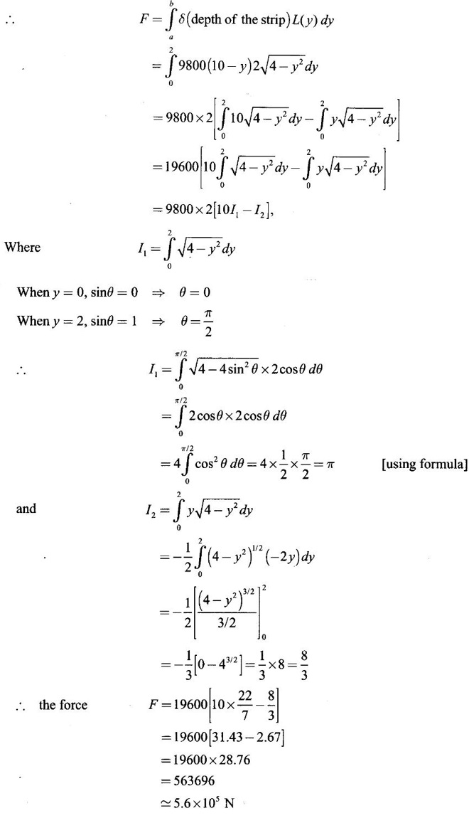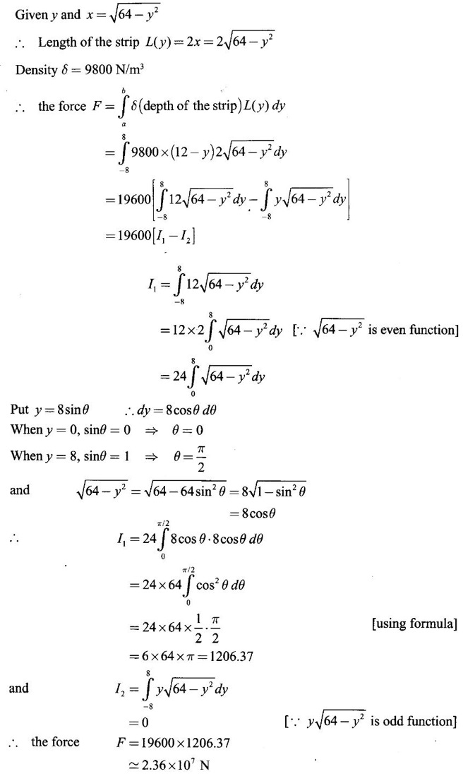 Matrices and Calculus: Unit IV: Integral Calculus : Tag: : Definition, Worked Examples, Exercise with Answers, Hydrostatic Force and Pressure, Moments and Centre of Mass | Integral Calculus - Applications of Integral