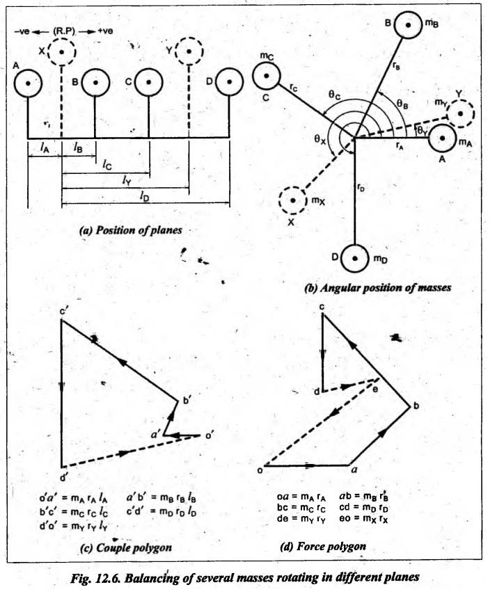 Theory of Machines: Unit V: Balancing and Vibration : Tag: : Balancing and Vibration - Theory of Machines - balancing of several masses rotating in different planes [dalby's method]