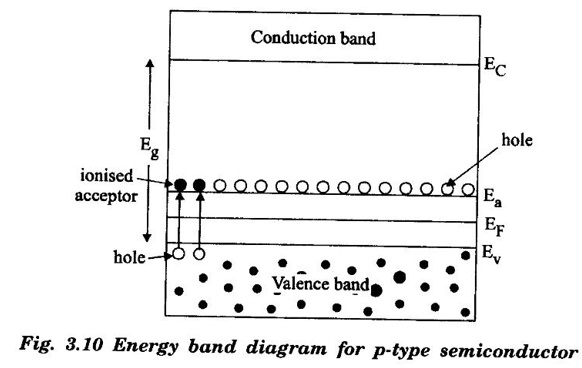 In p-type semiconductor, acceptor energy level is just above valence band (fig. 3.10).