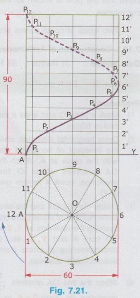 Engineering Graphics: Unit I (d): Engineering Curves : Tag: : Engineering Graphics (EG) - Construction of Helix