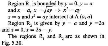where R is the region bounded by the semi-circle x2 + y2 = 2ax and the x-axis and the lines y = 0 and y = a.