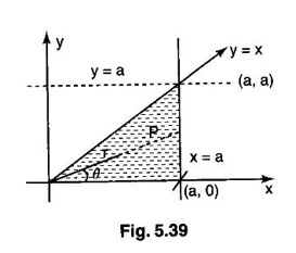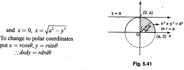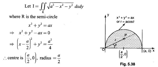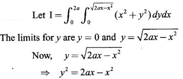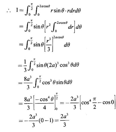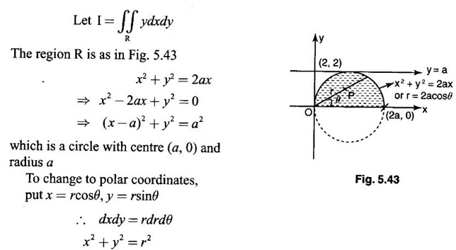 where R is the semi-circle x2 + y3 = ax in the I quadrant, changing to polar coordinates.