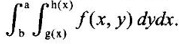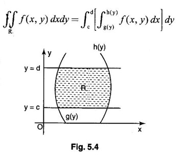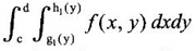 To evaluate this integral, we integrate first w.r.to y and then w.r.to x. This may sometimes be difficult to evaluate. But change in the order of integration will change the limits of y from c to d where c and d are constants and the limits of x from g1 (y) to h1 (y). The double integral becomes
