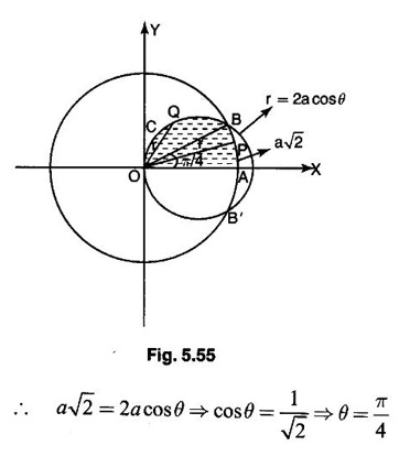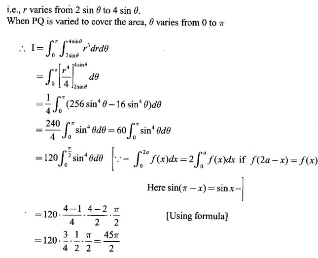 where A is the area between the circles r = 2 sin θ and r = 4 sin θ.
