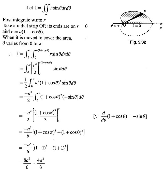 over the area of the cardioid r = a(1 + cos θ) above the initial line.