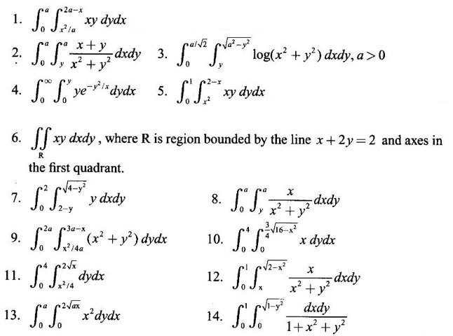 Matrices and Calculus: Unit V: Multiple Integrals : Tag: : Worked Examples, Exercise with Answers - Double Integration