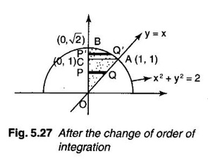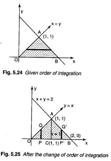 and hence the evaluation may be easy. To evaluate this integral, we integrate first w.r.to x and then w.r.to y. This process of changing a given double integral into an equal double integral with order of integration changed is called Change of order of integration.