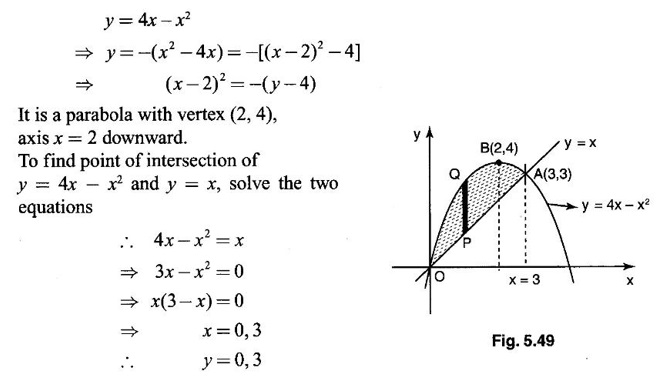 Unit - 5 Multiple Integrals DOUBLE INTEGRATION Double integrals occur in many practical problems in science and engineering. It is used in problems involving area, volume, mass, centre of mass. In probability theory it is used to evaluate probabilities of two dimensional continuous random variables. A double integral is defined as the limit of a sum. Let f(x, y) be a continuous function of two independent variables x and y defined in a simple closed region R. Sub-divide R into element areas ΔA1, ΔA2,...., ΔAn by drawing lines parallel to the coordinate axes. Let (x1, y1) be any point in ΔA1. Find the sum. Increase the number of sub-divisions indefinitely large i.e., n→∞ so that each ΔA1 → 0. In this limit, if the sum exists, i.e., Note The continuity of f(x, y) is a sufficient condition for the existence of double integral, but not necessary. The double integral exists even if finite number of discontinuous points are there in R, but it should be bounded. In practice, a double integral is computed by repeated single variable integration, integrate with respect to one variable treating the other variable as constant. Case 1: If the region R is a rectangle given by R= {(x, y)/a ≤ x ≤ b, c ≤ y ≤ d} where a, b, c, d are constants, then If the limits are constants the order of integration is immaterial, provided proper limits are taken and f(x, y) is bounded in R Case 2: If the region R is given by R = {(x, y) / a ≤ x ≤ b, g(x) ≤ y ≤ h(x)} where a and b are constants, then Here the limits of x are constants and the limits of y are functions of x, so we integrate first with respect to y and then with respect to x. Case 3: If the region R is given by R = {(x, y) / g(y) ≤ x ≤ h(y), c ≤ y ≤ d} where c and d are constants then Since the limits of x are functions of y, we integrate first w.r.to x and then w.r.to y Note (1) When variable limits are involved we have to integrate first w.r.to the variable having variable limits and then w.r.to the variable having constant limits. (2) When all the limits are constants, the order of dx, dy determine the limits of the variable. Example 1 Evaluate Solution Example 2 Show that Solution Example 3 Evaluate Solution Note We could write the integral in Example 3 as a product of two integrals because limits are constants and the functions could be factorised as x terms and y terms. This is not possible in Examples 1 and 2, even though the limits are constants. Example 4 Evaluate Solution Example 5 Evaluate Solution Example 6 Evaluate Solution Example 7 Evaluate Solution Given that the region R is bounded by the coordinate axes y = 0, x = 0 and the circle x2 + y2 = a2. So, the region of integration is the shaded region OAB as in Fig. 5.5. To find the limits for x, consider a strip PQ parallel to x-axis, x varies from x = 0 to x = When we move the strip to cover the region it moves from y = 0 to y = a. ⸫ limits for y are y = 0 to y = a. Example 8 Evaluate: Solution Given that the region of integration is bounded by y = x and y = x2 as in Fig. 5.6. To find the points of intersection solve y = x2 and y = x ⸫ x2 = x ⇒ x(x - 1) = 0 ⇒ x = 0 and x = 1 ⸫ y = 0,1 ⸫ Points are O (0, 0) and A (1, 1). We first integrate with respect to y. ⸫ take a strip parallel to y-axis, its lower end P is on y = x2 and upper end Q is on y = x. ⸫ limits for y are y = x2 and y = x. When we move the strip PQ to cover the region x varies from 0 to 1. Example 9 Evaluate Evaluate Solution Given that the shaded region OAB is the region of integration bounded by y = 0, x = 2a and the parabola x2 = 4ay as in Fig 5.7. We first integrate w.r.to y and then w.r.to x. To find the limits for y, we take a strip PQ parallel to the y-axis, its lower end P lies on y = 0 and upper end Q lies on ⸫ the limits for y are y = 0 to y = x2 / 4a. ⸫ When the strip is moved to cover the area, x varies from x = 0 to x = 2a. Example 10 Evaluate Solution Given that the region of integration is the triangle OAB as shown as Fig. 5.8. We first integrate w.r.to x and then w.r. to y. To find the limits for x, take a strip PQ parallel to x-axis. Its left end P is on x = y and right end Q is on x = 10y. ⸫ The limits for x are x = y and x = 10y. When the strip is moved to cover the region, y varies from 0 to 1. Example 11 Evaluate Solution The region R is the shaded region OAB. To find B, solve y2 = x and x + y = 2 Points are (+4, −2), (1, 1) But B is in first quadrant ⸫ B is (1, 1) and A is (2, 0) which is the point of intersection of y = 0 and x + y = 2. It is convenient to integrate first w.r.to x and hence we find the limits for x. ⸫ Take a strip PQ parallel to x-axis, P lies on y2 = x and Q lies on x + y = 2 ⇒ x = 2 - y ⸫ x limits are x = y2 and x = 2 - y When the strip is moved to cover the region, y varies from 0 to 1. Example 12 Evaluate Solution The parabola y = 4x - x2 = −(x2 - 4x) = −[(x − 2)2 - 4] ⇒ y – 4 = -(x - 2)2 ⇒ (x - 2)2 = -(y − 4) Its vertex is (2, 4), axis of symmetry is x = 2 and it passes through (0, 0) and downward. To find B, solve y = x and y = 4x - x2 ⇒ x = 4x - x2 ⇒ 3x - x2 = 0 ⇒ x2 - 3x = 0 ⇒ x(x - 3) = 0 ⸫ x = 0,3 When x = 3, y = 3 ⸫ B is (3, 3) ⸫ The region of integration is the shaded region OAB as in Fig. 5.10. We integrate first w.r.to y and then w.r.to x. To find y limits, take a strip PQ parallel to y-axis. P lies on y = x and Q lies on y = 4x - x2. ⸫ limits for y are y = x and y = 4x - x2. When the strip is moved to cover the region, x varies from 0 to 3. Example 13 Evaluate: Solution Given that the region of integration is the shaded region OAB as in Fig. 5.11. To find A solve x + y = 2 and y2 = x ⸫ A is (1, 1) and B is (0, 2) which is the point of intersection of x = 0 and x + y = 2. It is convenient to integrate with respect to y first and hence find y limits. Take a strip PQ parallel to y-axis. P lies on y2 = x and Q lies on x + y = 2. ⸫ the limits for y are y = √x and y = 2 - x. When t