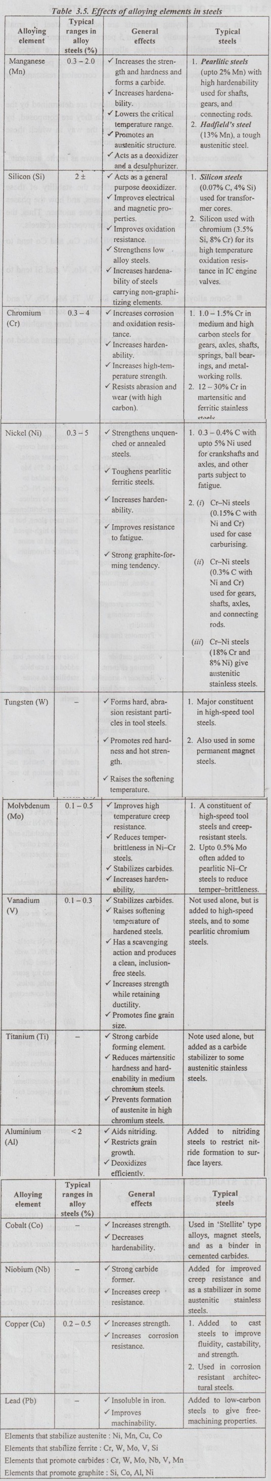 Engineering Materials and Metallurgy: Unit III: Ferrous and Non-Ferrous Metals : Tag: : - Effect of alloying Elements in Steels