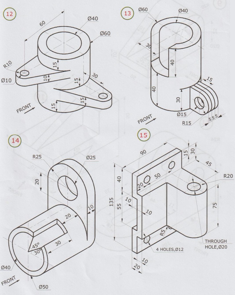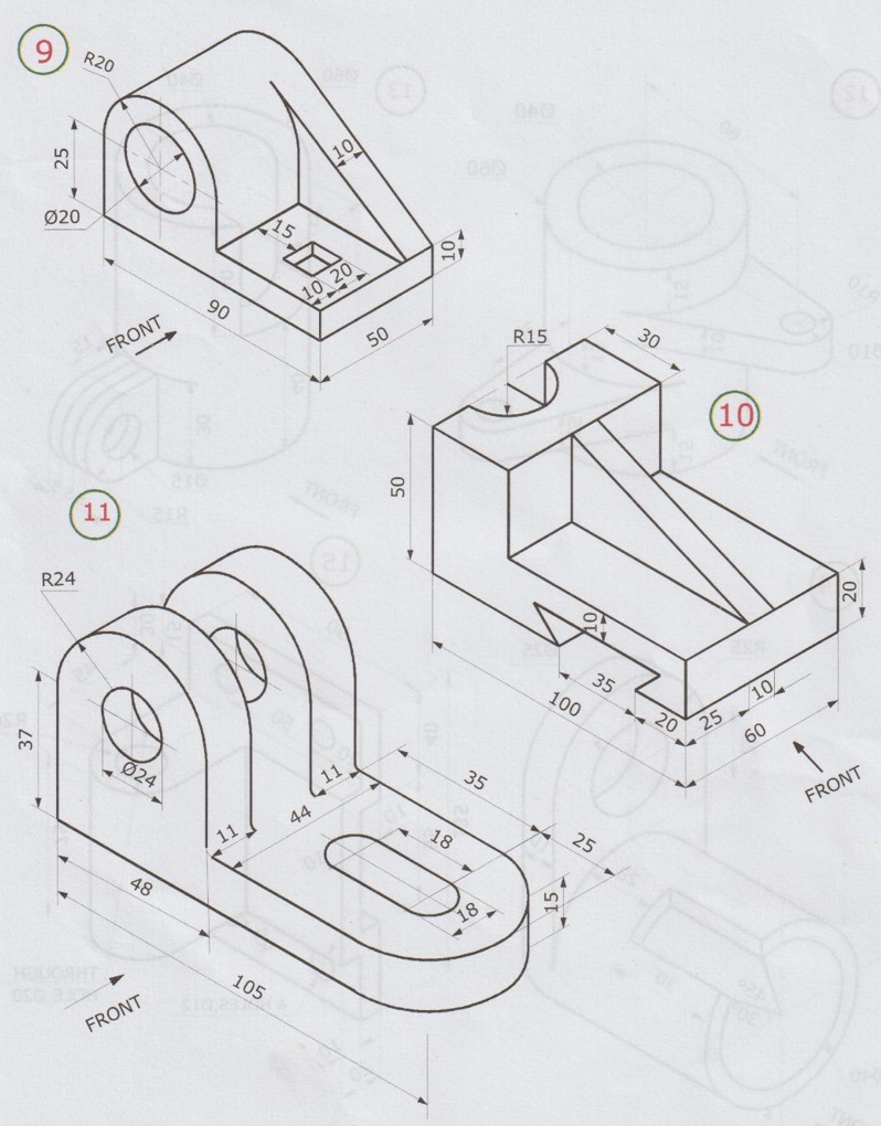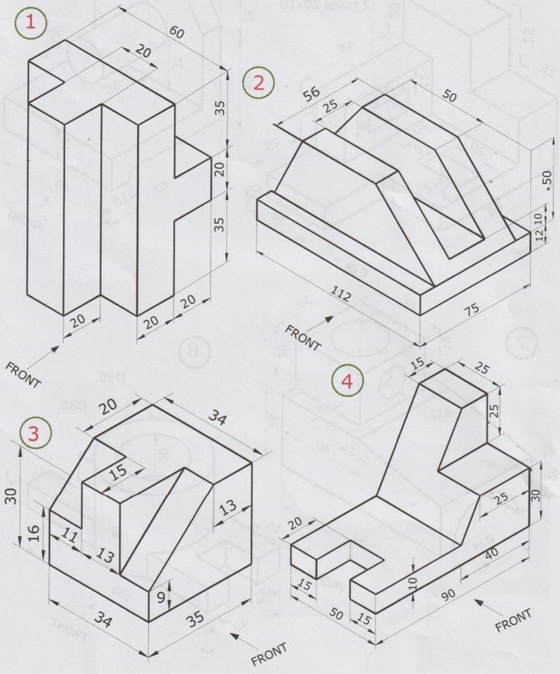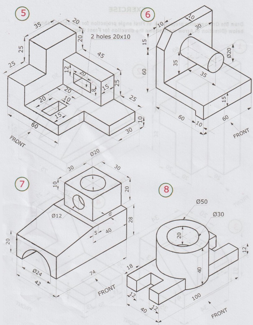 EXERCISE Draw the Orthographic projections in First angle projection for the objects shown below (Direction of Arrow mark shows the direction for Front view)