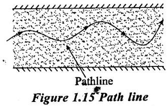 FLOW CHARACTERISTICS This topic deals with the properties of a fluid in motion. There are different types of fluid flow. The study of fluid flow is divided into Hydrostatics, Hydro kinematics and Hydrodynamics. Hydrostatics deals with liquid at rest. The kinematics of fluid in motion deals only with space-time relationships (velocity and acceleration) without taking in to consideration, the force or energy causing the flow. The fluid motion can be described completely by an expression describing the location of a fluid particle in space at different times, thus enabling determination of the magnitude and direction of velocity and acceleration in the flow field at any instant of time. Hydrodynamics of fluid is the study of fluid motion with the forces causing its flow. The dynamic behavior of the fluid flow is analyzed by the Newton's second law of motion, which relates the acceleration with the forces. Flow characteristics are studied by using two methods. (i) Lagrangian Method (ii) Eulerian method (i) Lagrangian method: A single fluid particle taken in to consideration and it is analyzed and followed to study its properties like velocity, acceleration, density, etc. (ii) Eulerian method: A particular space or region may be selected and fluid flows through this region. During this time, the fluid characteristics are analyzed. It is commonly used method. The fluid characteristics such as pressure, velocity, density, viscosity, temperature etc., may change from section to section in a pipeline and also with respect to time. The type of flow depends upon the conditions of fluid flow and it may be mainly classified into (i) Laminar flow (ii) Turbulent flow (iii) Steady flow (iv) Unsteady flow (v) Uniform flow (vi) Non uniform flow (vii) Compressible flow (viii) Incompressible flow 1. Laminar flow It is a smooth and regular flow. In this flow the fluid particles moves in layers, with one layer sliding over other. Each liquid particle has a definite path and the paths of individual particles do not cross with each other. This type of flow is also called as stream lined flow as shown in figure 1.13. The condition for this type of flow is (i) Low velocity of flow (ii) Flowing fluid is highly viscous (iii) Reynolds number is less than 2000. (iv) The flow is through a very narrow passage. Example: 1. High viscous oil moves slowly in a very small pipe 2. Smoke at the outlet of the chimney 2. Turbulent flow In this type of flow, the velocity of a particle will vary in magnitude and direction from point to point and time to time. Fluid particles will occupy different relative positions at different points. A flow in which each liquid particle does not have a definite path and moves in an irregular way is called turbulent flow as shown in figure 1.14. The individual path of each particle crosses each other there by forming eddy currents. Hence sometime this type of flow is also called as eddy flow. The condition for this type of flow is (i) Very high velocity of flow. (ii) Reynolds number is greater than 2000. (iii) The particles in one layer collide with particles in another layer. Example: 1. Discharge of smoke in atmosphere. 2. Flow in rivers during floods. 3. Flow of water in the pump. 4. Waterfalls. 3. Steady flow When the fluid properties such as velocity, density, pressure, temperature and discharge etc., at any point in the pipe remains constant that the flow is said to be steady flow. Example: flow through a tap, when the water level in a tank is constant 4. Unsteady flow When any one of the properties of the fluid at any point varies with respect to time, then the flow is said to be unsteady flow. Example: flow through a tap, when the head is not constant. 5. Uniform flow If the magnitude and direction of velocity at a point of liquid in motion don't vary with respect to time then the flow is said to be uniform flow. Example: flow of fluids through a pipe line or over channels, whose cross sectional area is constant. 6. Non uniform flow The motion of a fluid is said to be non uniform when velocity changes from point to point on its flow. Example: flow through a taper pipe. 7. Compressible flow In this flow, density of fluid is same at all sections. Example: liquid flow in pipes. 8. Incompressible flow In this flow, density of flow is not same at all section. Examples: gas flow in pipes 9. Rotational flow It is a flow in which the fluid particles also rotate about their own axis while flowing along stream line. 10. Ir-rotationalflow It is a flow in which fluid particles do not rotate about their own axis while flowing along the streamlines. 11. One dimensional flow It is a flow in which the velocity of the flow is a function of time and one space coordinate (x (or) y (or) z). The flow through a pipe is one-dimensional flow. 12. Two dimensional flow It is a flow in which the velocity of the flow is a function of time and two space coordinate (xy, xz or yz). The flow between two parallel plates of large extent, flow over a long spill way is an example of two dimensional flow 13. Three dimensional flow It is a flow in which the velocity of the flow is a function of three space coordinates (xyz) and time. Flow in converging or diverging pipe section is a three dimensional flow. Types of flow lines The following types of flow lines are there during the movement of fluid i) Path line: A path line is a curve traced by a single fluid particle during its motion. Thus the path line shows the direction of a fluid particle for a certain period of time as shown in figure 1.15. ii) Stream line: A stream line is an imaginary line drawn in the fluid in such a manner that the velocity of the fluid at each and every point on the stream line is tangent to stream line as shown in figure 1.16. iii) Stream tube: The stream tube consists of stream lines forming its boundary surfaces. The stream tube is defined as a circular space formed by the collection of stream lines passing through the perimeter of a closed cur