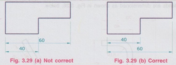 Following are the rules of dimensioning generally followed while dimensioning a drawing.