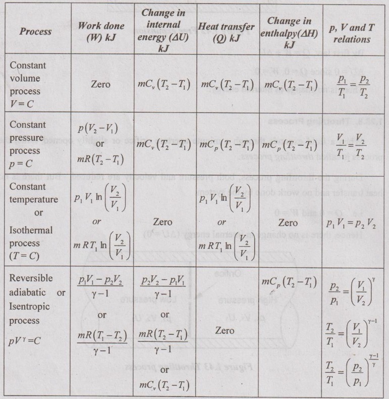 Engineering Thermodynamics: Unit I: Basics, Zeroth and First Law : Tag: : Thermodynamics - Important Formulae for Non-Flow Processes