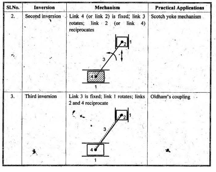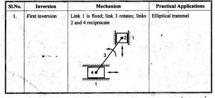 double slider-crank chain provides three different inversions. Table 1.6 shows
