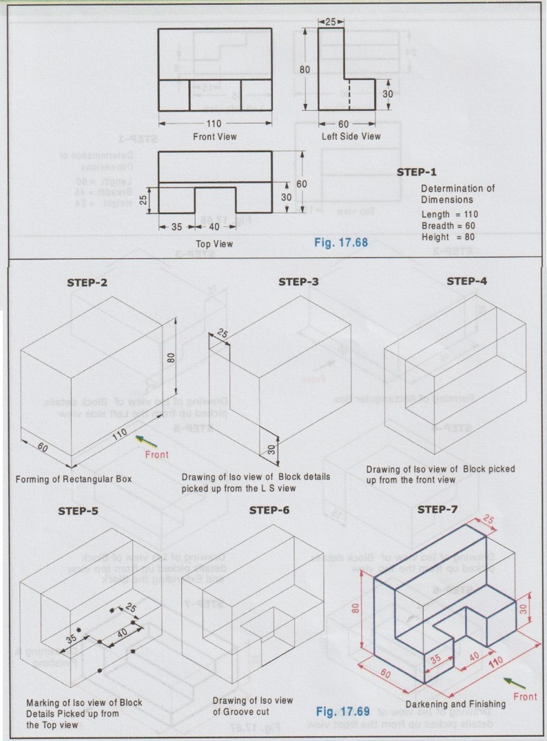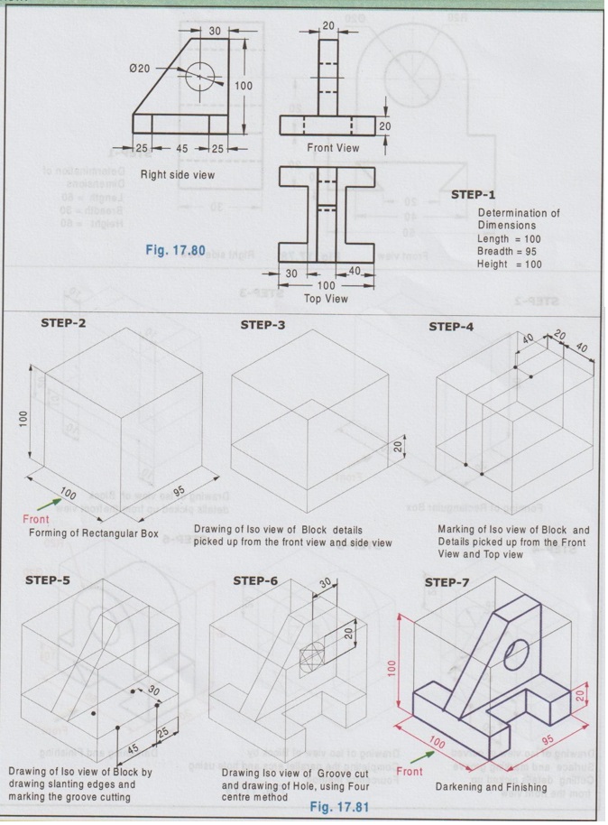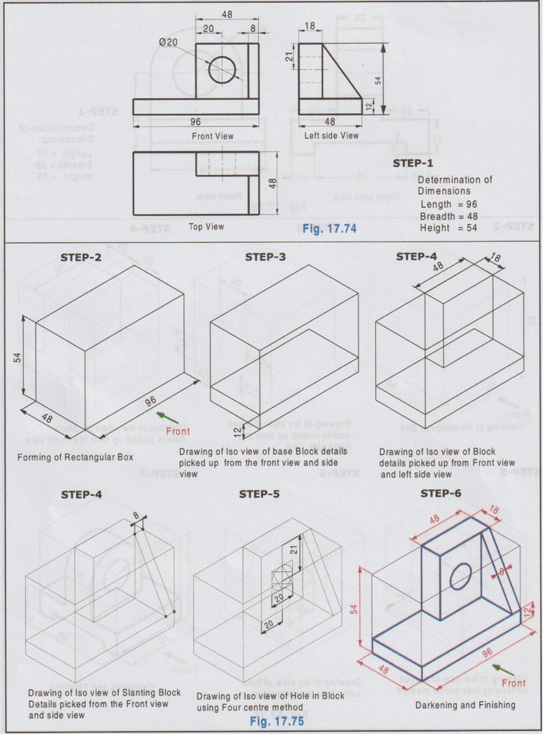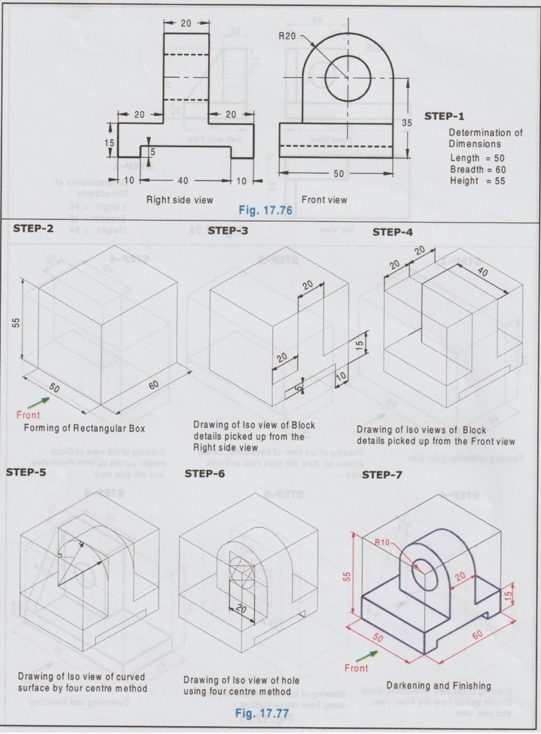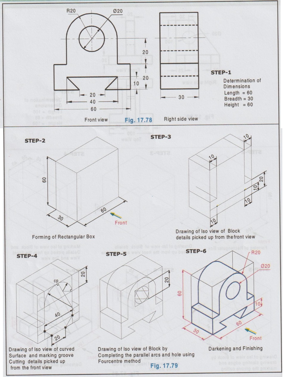 Engineering Graphics: Unit V (a): Isometric Projection : Tag: : Engineering Graphics (EG) - Isometric Projections of objects from their Orthographic Projections