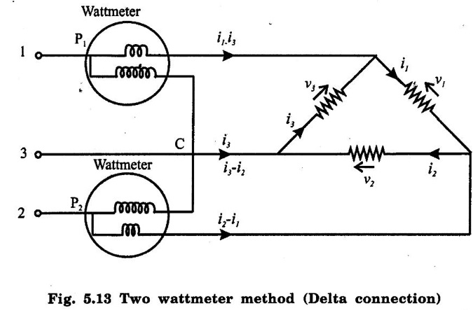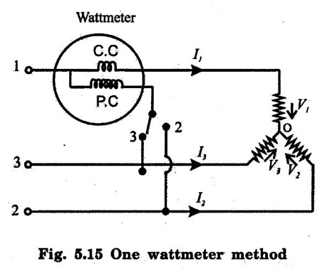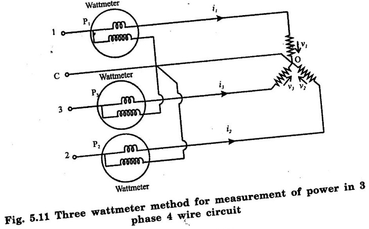 Three wattmeter method : The connections as employed for a 3 phase 4 wire system are shown in fig. 5.11