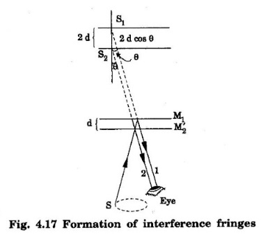 mirrors, the total path difference is 2d cos θ + λ/2 (Fig. 4.17). •