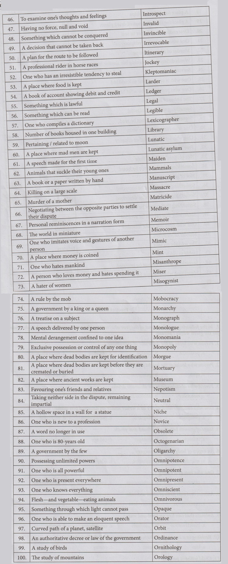 Professional English I: Skill 2: Introduction to Effective Communication: Vocabulary : Tag: : Vocabulary | Professional English - One Word Substitution