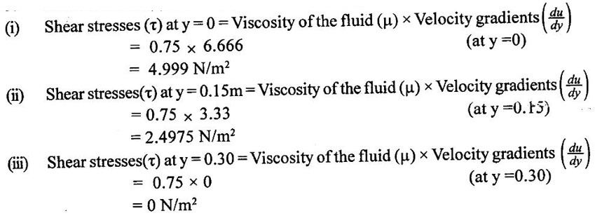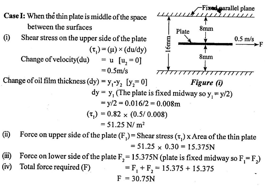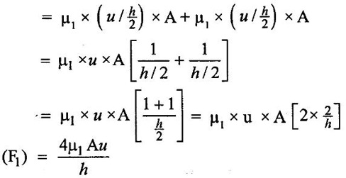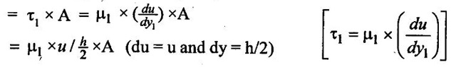 3. Shear stress on the left side of the plate (τ1) = (μ) × (du/dy)1