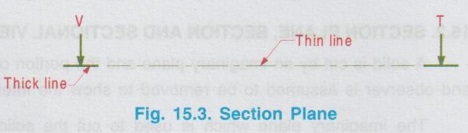 A cutting plane is represented by its trace drawn in thin chainlines thickened at ends.