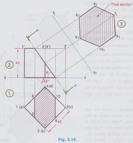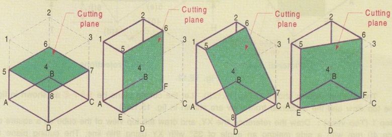 Engineering Graphics: Unit IV (a): Sections of Solids : Tag: : Construction, Steps, Example Problems | Engineering Graphics (EG) - Sections of cube