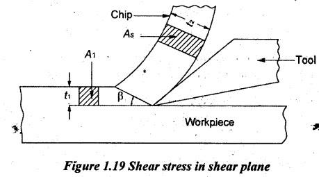 Manufacturing Technology: Unit I: Mechanics of Metal Cutting : Tag: : Mechanics of Metal Cutting - Manufacturing Technology - shear stress in shear plane