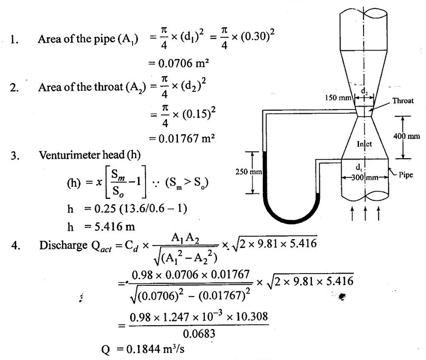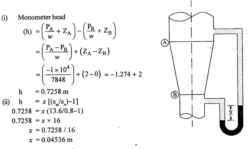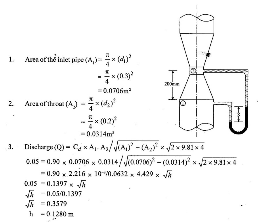 Solved Examples Based on Inclined Venturimeter: Fluid Properties and Flow Characteristics - Fluid Mechanics and Machinery