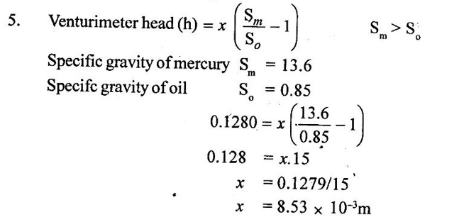 5. Venturimeter head (h) = (P1/w + Z1) − (P2/w + Z2)