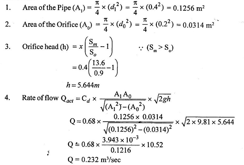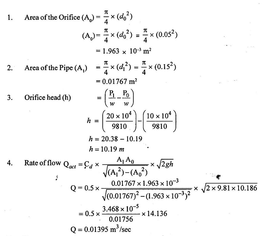 Solved Examples Based on Orifice Meter: Fluid Properties and Flow Characteristics - Fluid Mechanics and Machinery