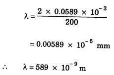 In a Michelson interferometer, 200 circular fringes crossed the field of view when the movable mirror is displaced through a distance 0.0589 mm. Calculate the wavelength of monochromatic source used.