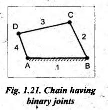 chain shown in Fig.1.21, has four binary joints at A, B, C and D.
