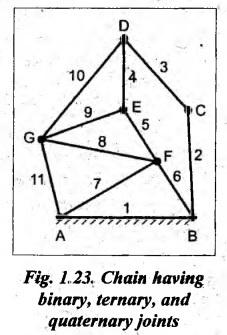 chain shown in Fig.1.23, has one binary joint at C, four ternary joints at A,
